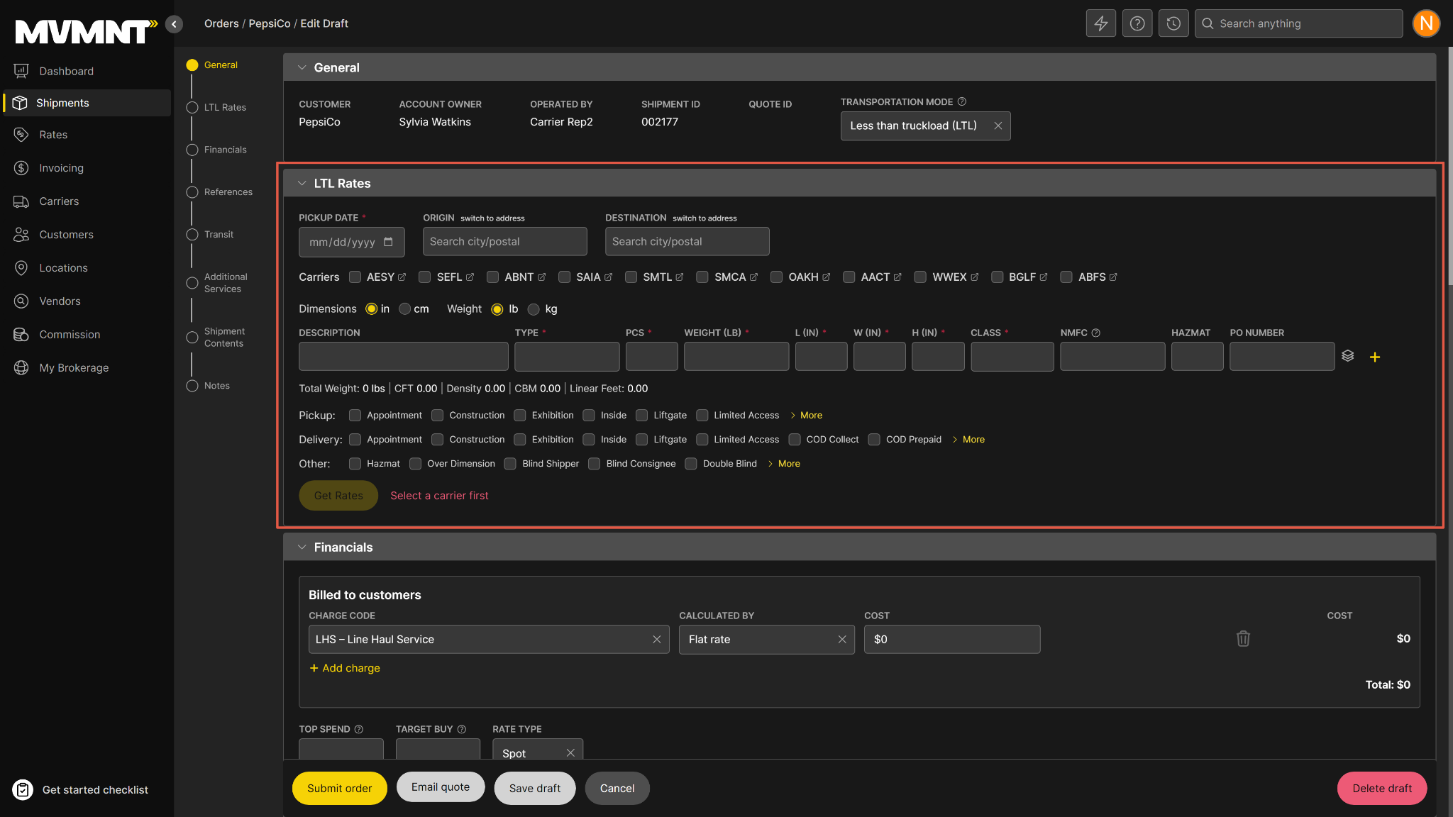 -The carrier is now selectable to see rates when you build the LTL Shipment