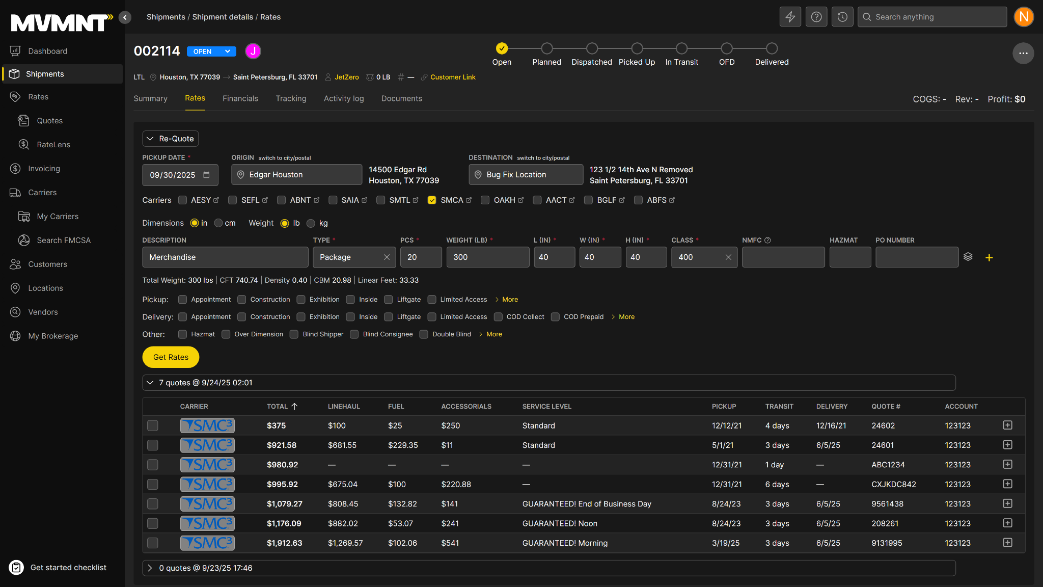 -Most Notable it includes the LTL Rates section. This is where you can select your onboarded carriers to get rates.